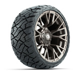 GTW® Stellar Black/ Machined 14 in Wheels with 22X10-14 Timberwolf All-Terrain Tires - Set of 4