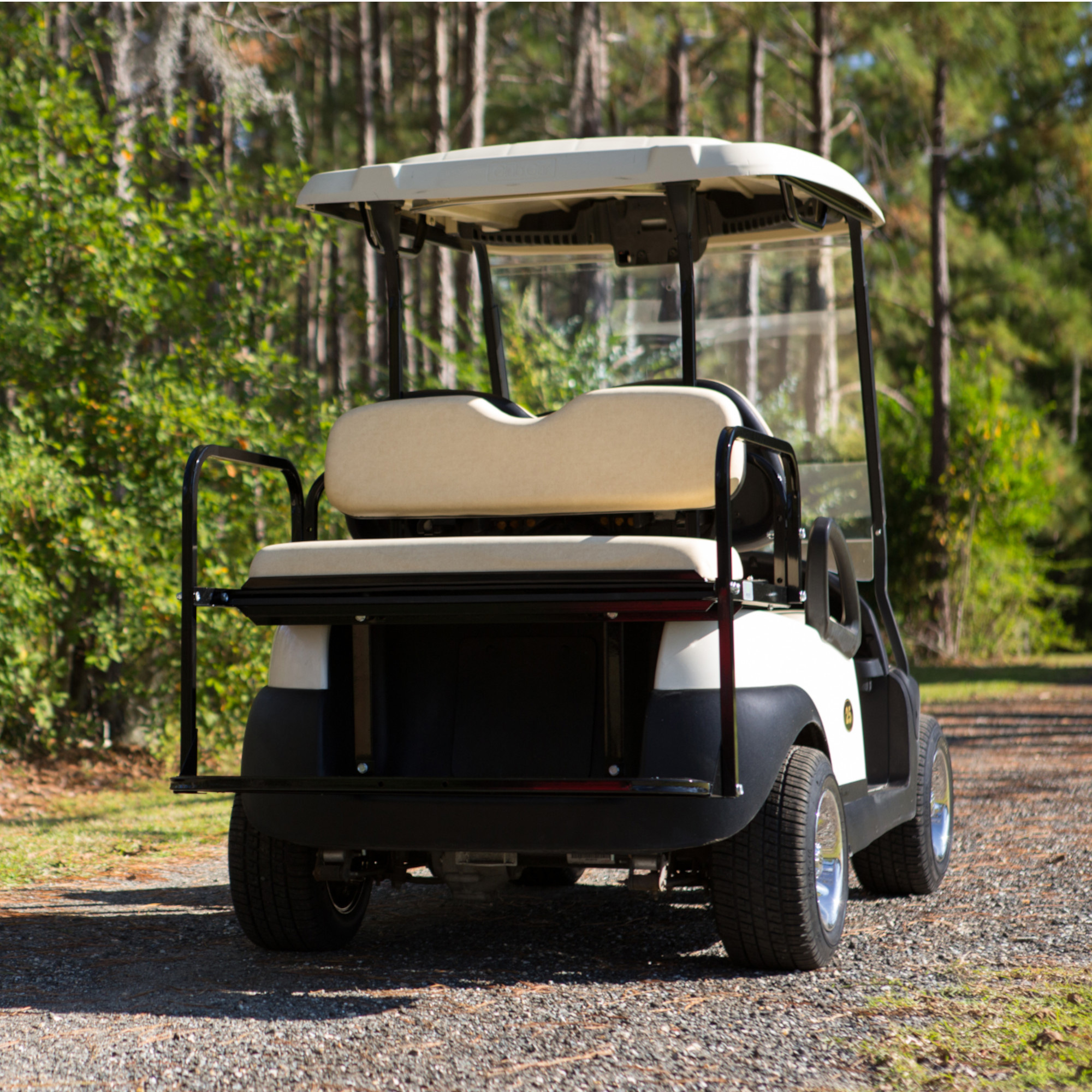 Club Car has some of the most remarkable new models, like the Precedent, the Onward, or even the Tempo. Each is built to a specific need that the customer requires to be filled. Finding golf cart parts for them can sometimes be a challenge. The rule thumb in the market is that a model needs to be at least five years old. We hate that rule. There is no reason you should not be able to upgrade your caddie the minute you drive it off the lot. We are not dealers, but you can bet that as soon as one of these new models rolls down the line, we buy them and start producing after-market products for them. A prime example is the Buggies Unlimited Rear Seat Kit for Precedent, Onward, and Tempo.This golf cart rear seat is not hard to install. You are going to want the help of a friend as some of it is heavy. Nothing about it is hard to do, and it comes with step-by-step instructions. All you need to do is call Buggies Unlimited and get the Club Car accessory coming your way.
