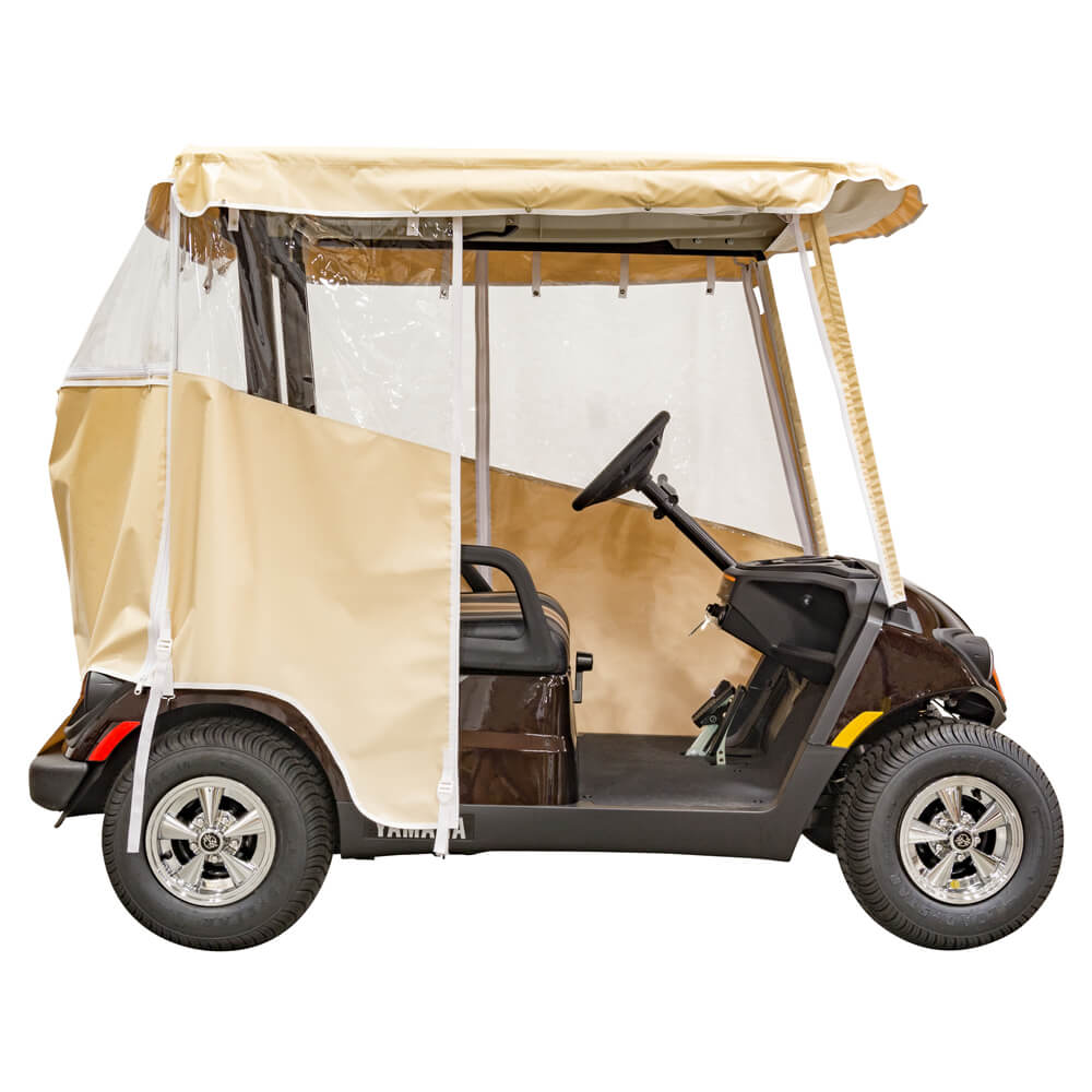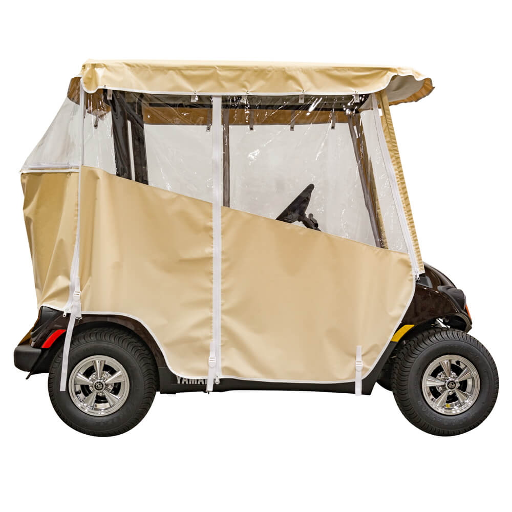These RedDot enclosures are custom made, so they fit each model golf cart perfectly. Roll up the sides when you don't need the coverage or roll them down when inclement weather strikes.