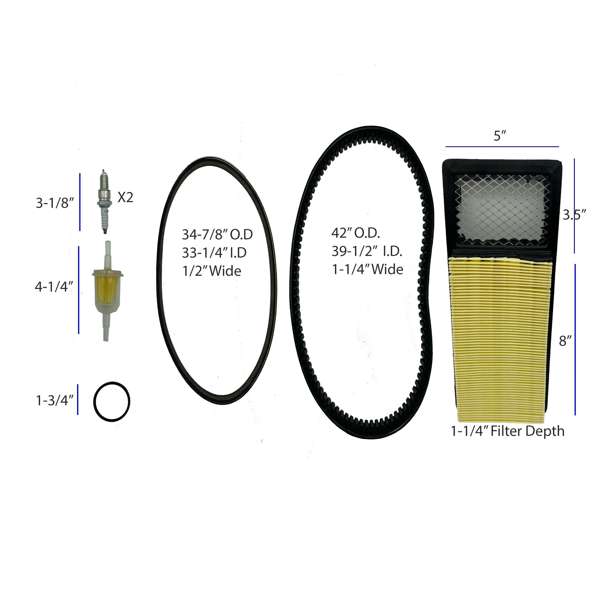Working on a newer golf cart is as important as keeping the old ones in shape. Just because you have a 2005 does not mean you need to tune it up any less than your neighbor with the 1996. An annual service is essential, and depending on your use, you may need to do it twice a year up to quarterly. Get a Buggies Unlimited Deluxe Tune-Up Kit for your E-Z-GO TXT, and make sure you do not get passed up by the vintage carts around the block.The Buggies Unlimited deluxe tune-up kit for E-Z-GO TXT golf carts will fit 1996-2005 E-Z-GO TXT models, and it comes with two park plugs. It also comes with a fuel filter, a panel-style air filter, a drive belt, and a starter-generator belt. You also get an oil filter o-ring, but you do not get the oil filter itself. Make sure you order one of those as well; no tune-up is complete without an oil change. Book with Buggies Unlimited today.