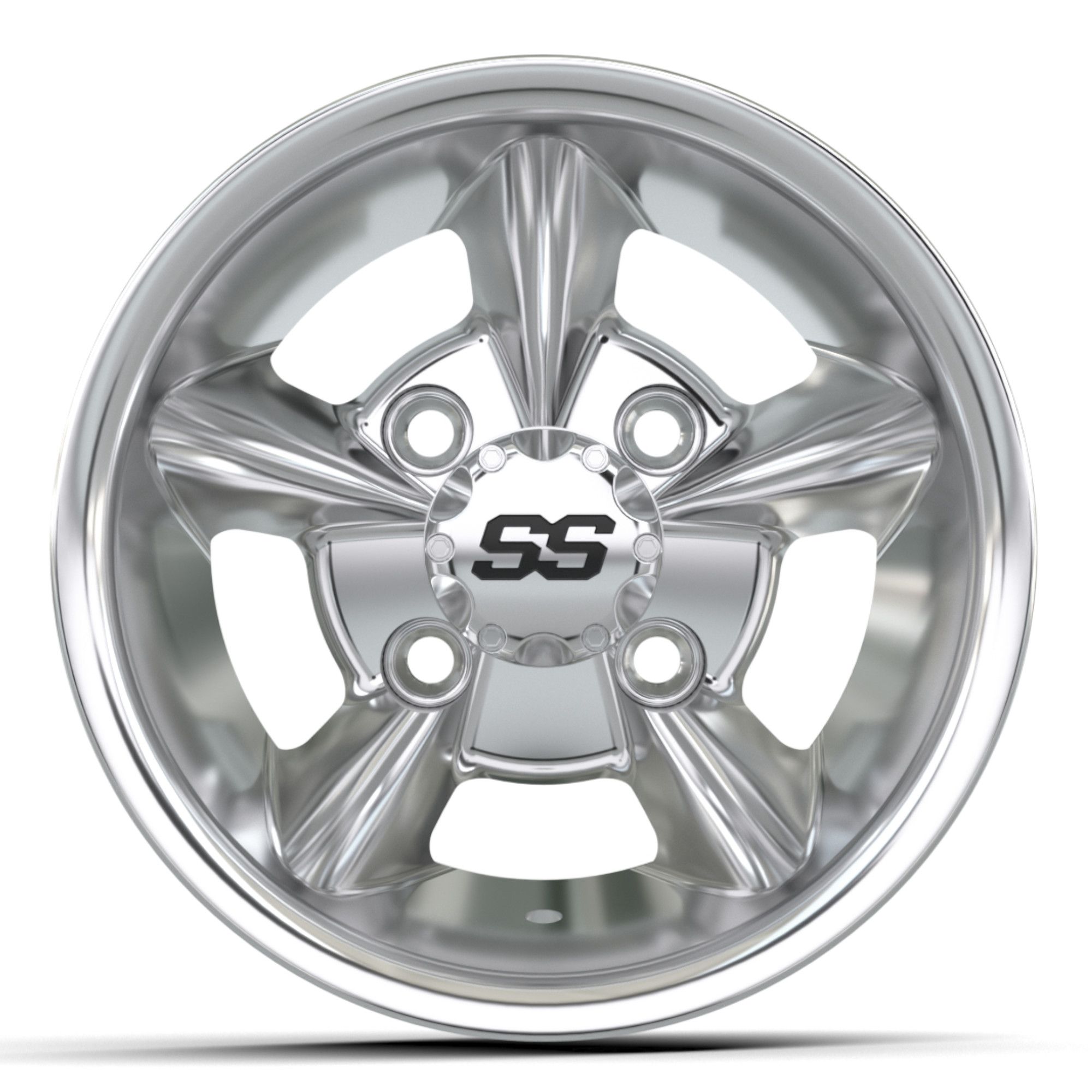 The GTW Godfather Wheel in Chrome from Buggies Unlimited is what you need to make you feel like the top dog again. You had to know you would inspire something when you tricked out your caddie. Now all of your neighbors have one and seem to be surpassing you every time you turn around. So it would help if you had a secret weapon like these rims to put you up a few levels. That way, you could cost for a little while, knowing there is nothing they could do to get out in front while you were sporting these.There are all kinds of wheels you can choose from. As a matter of fact, this specific one comes in four different sizes and three finishes. You can customize your look to fit what you envision. However, the sizes give you a design license and let you choose a performance level. How is that possible? Are they powered wheels? No, nothing fancy like that. As you go up in diameter, you are, of course, regearing for speed. As you go down, your torque increases. If you use it to move heavy loads, consider sticking with a ten. However, if you plan to cruise, you can increase the diameter.The installation of a golf cart rim to your caddie is not an issue. All you need is a jack, a few stands, your trusty four-way, and a buddy. However, mounting treads on rims is a different story. You need a unique set of equipment that only tire and wheel shops have. Just order a set from us, and we will mount them before shipping.Buggies Unlimited does it all. We carry golf cart accessories like rear seats and diamond plate body parts to make you look good. We also have the hard parts you need to stay rolling. Call us now for all your golf cart needs.