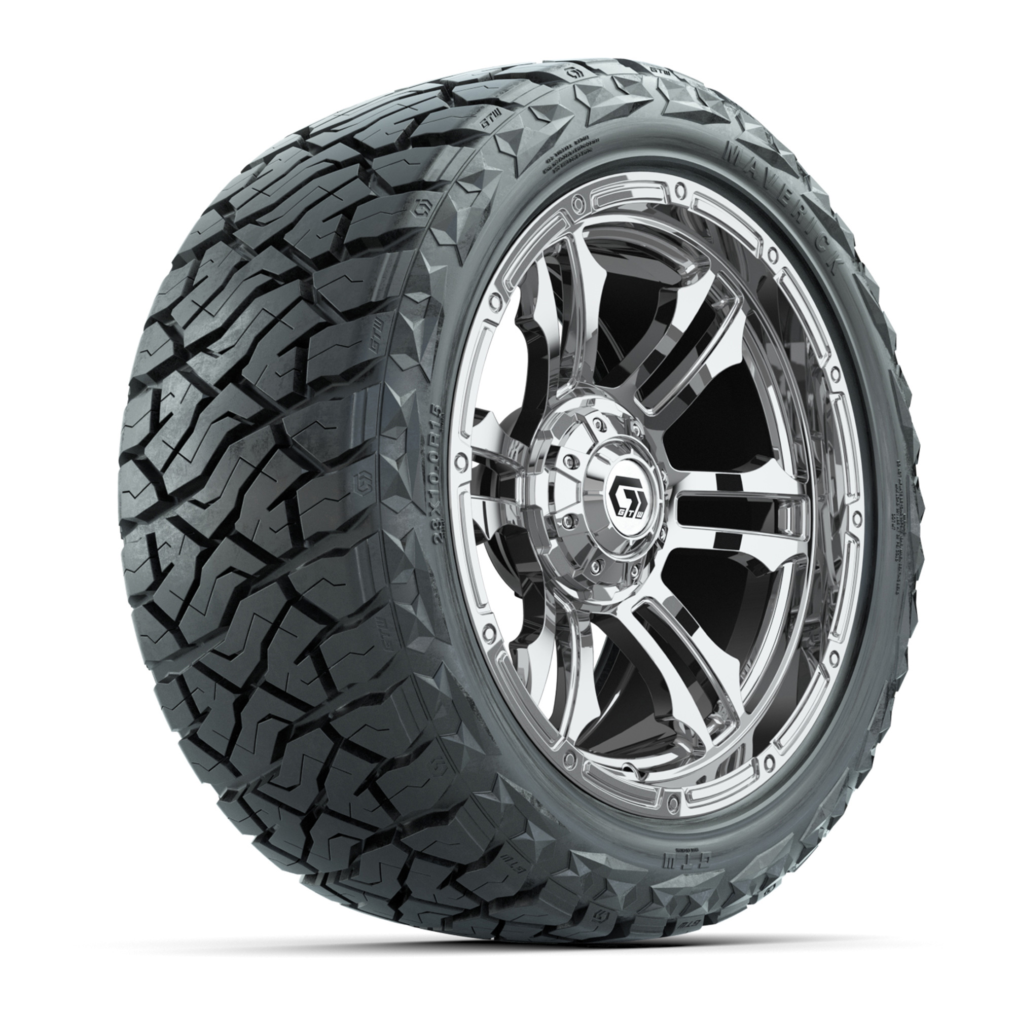 GTW® Shogun Chrome 15 in Wheels with 23x10.00-R15 Maverick All-Terrain Tires – Set of 4