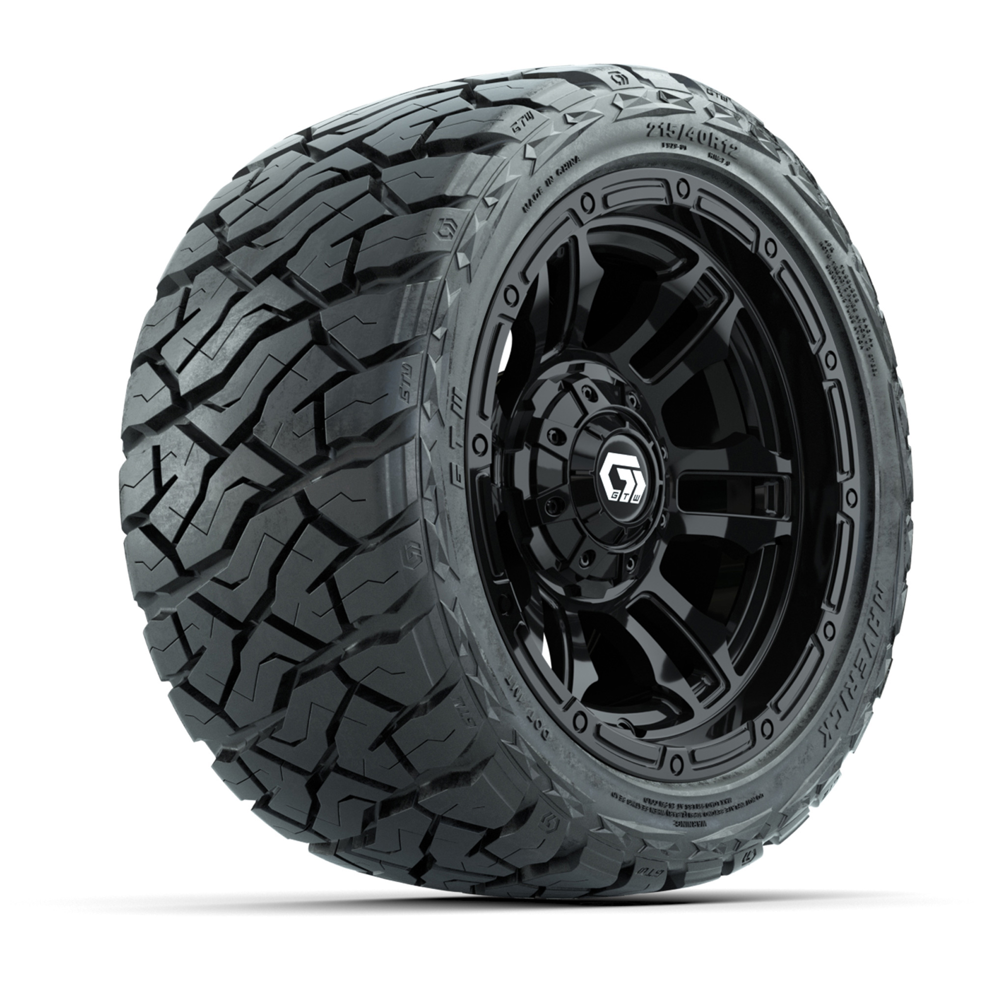 GTW® Shogun Gloss Black 12 in Wheels with 215/40-R12 Maverick Low-Profile A/T Tires – Set of 4