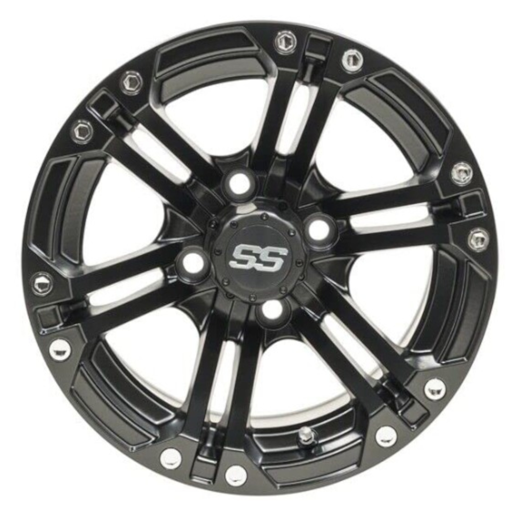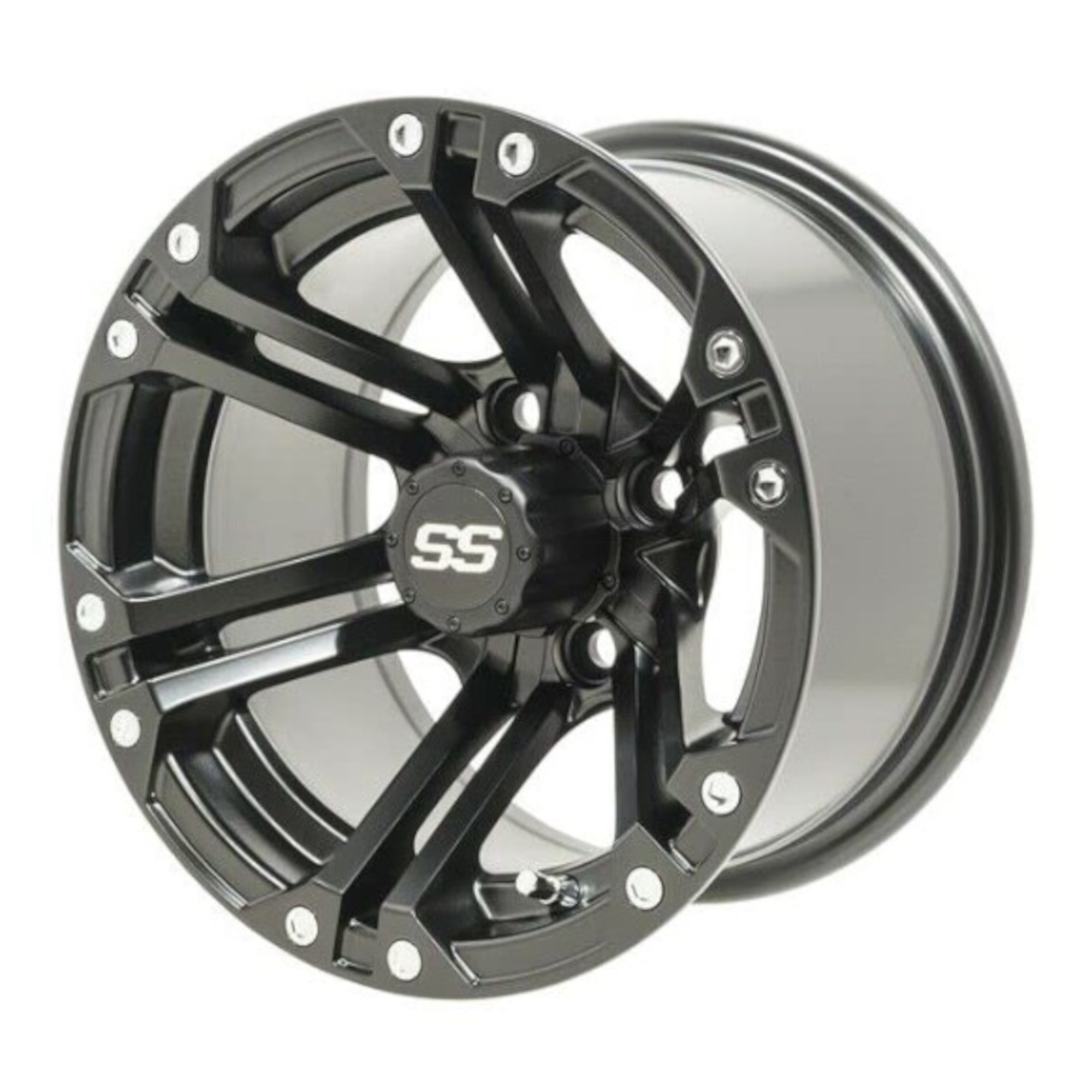 Try GTW Specter Matte Black Wheels from Buggies Unlimited on for size if you're tired of the chrome scene. We understand that sentiment completely. We have seen golf carts that look more like semi-trucks because they were dripping in so much diamond plate. That is all well and good if you plan to use it as a disco ball. However, for those who use it for work or nature watching, the last thing we want is a reflective object to impede our line of sight. Not to mention the hunters who prefer things not to scare off the wildlife.There is not a louder statement that you can make with your caddie than a new set of aftermarket rims. We know it's all about timing too. Your neighbor jumped the gun and replaced them right off the bat. As a matter of fact, you are pretty sure that was the first thing he did. You were smart about it, though, and planned it out to be the exclamation point on this long-time unfolding project. Like a perfectly timed downshift that lets a driver take the lead, this move will cement the true golf cart king of the block.This is a product that is better installed by a professional. Putting the wheel on your golf cart is something you can handle, but getting the tire on the rim is a different story. If you order new ones at the same time, we will mount them for free. However, for a small fee, you can take them to a local shop.Call Buggies Unlimited today for everything you need. Give us a ring as soon as you have a spare minute, and we can start the process of upgrading your golf cart. We will even set you up with a tune-up kit.