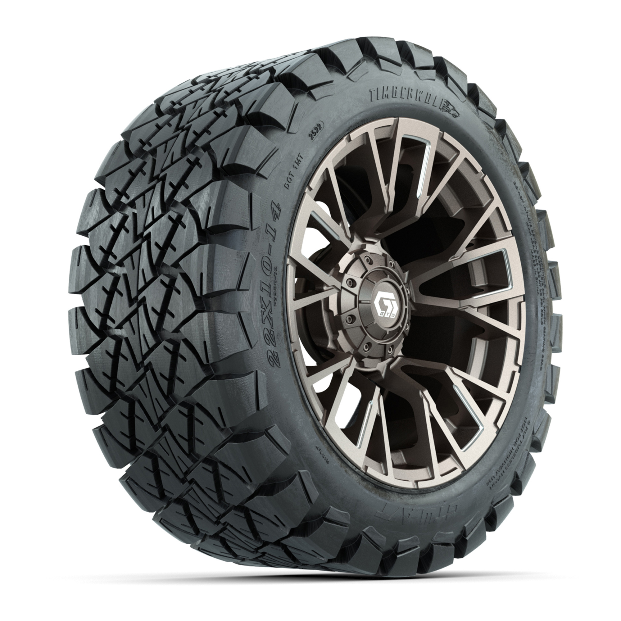 GTW® Vandal Bronze Machined 14 in Wheels with 22x10-14 Timberwolf All-Terrain Tires - Set of 4