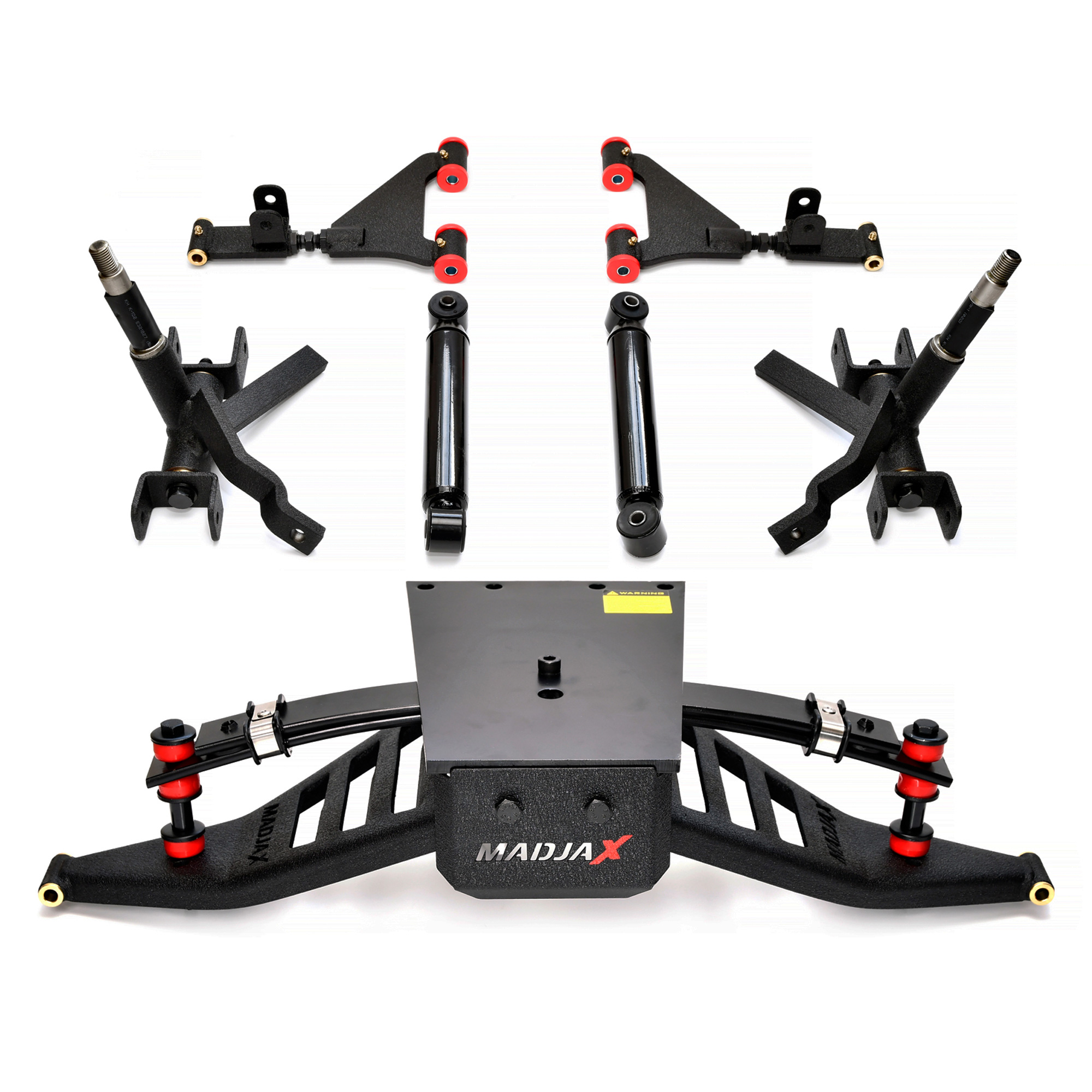 Take your vehicle to the next level with the MadJax® King Bolt Lift Kit. Offering extra clearance, this kit allows you to effortlessly drive over rocks, bumps, and uneven surfaces. Built with premium materials, it enhances your cart’s strength, style, and overall ride quality.