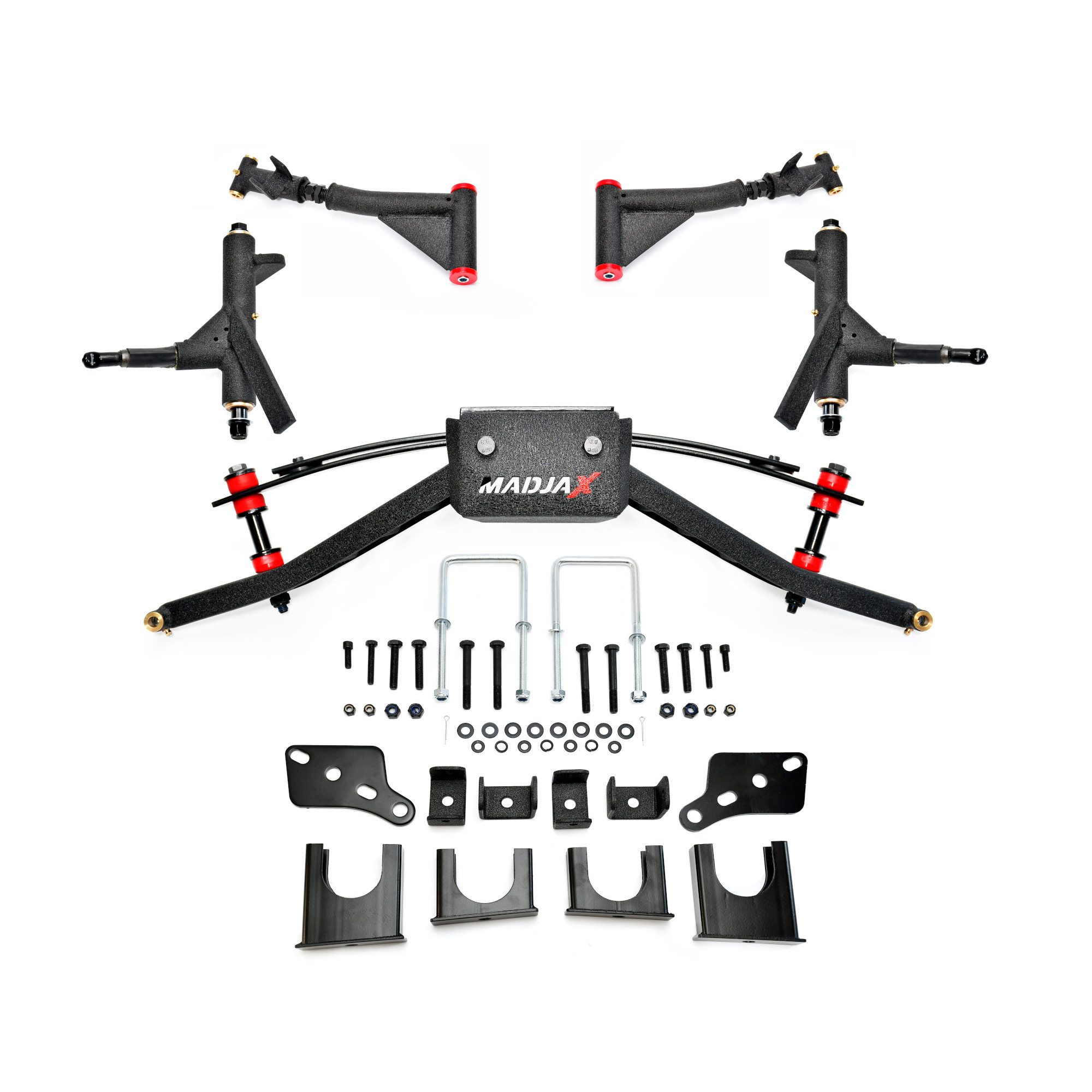 Take your vehicle to the next level with the MadJax® King 4” XD Lift Kit. Offering extra clearance, this kit allows you to effortlessly drive over rocks, bumps, and uneven surfaces. Built with premium materials, it enhances your cart’s strength, style, and overall ride quality.