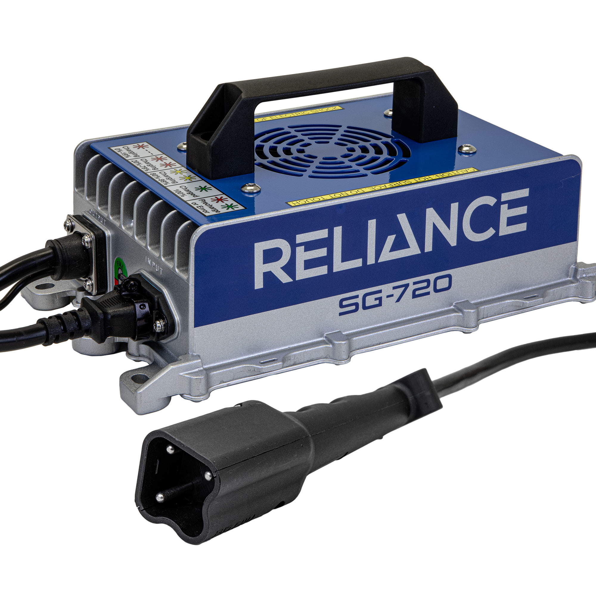 The new Reliance SG-720 is a great alternative to OEM chargers. Its intelligent charge curve uses real-time data to most efficiently charge your PTV batteries. With its die cast aluminum body, the SG-720 is durable yet weighs only 7.5lb - less than half the weight of comparable OEM chargers. The integrated carry handle allows for easy transport, while the mounting tabs make mounting or hanging quick and easy