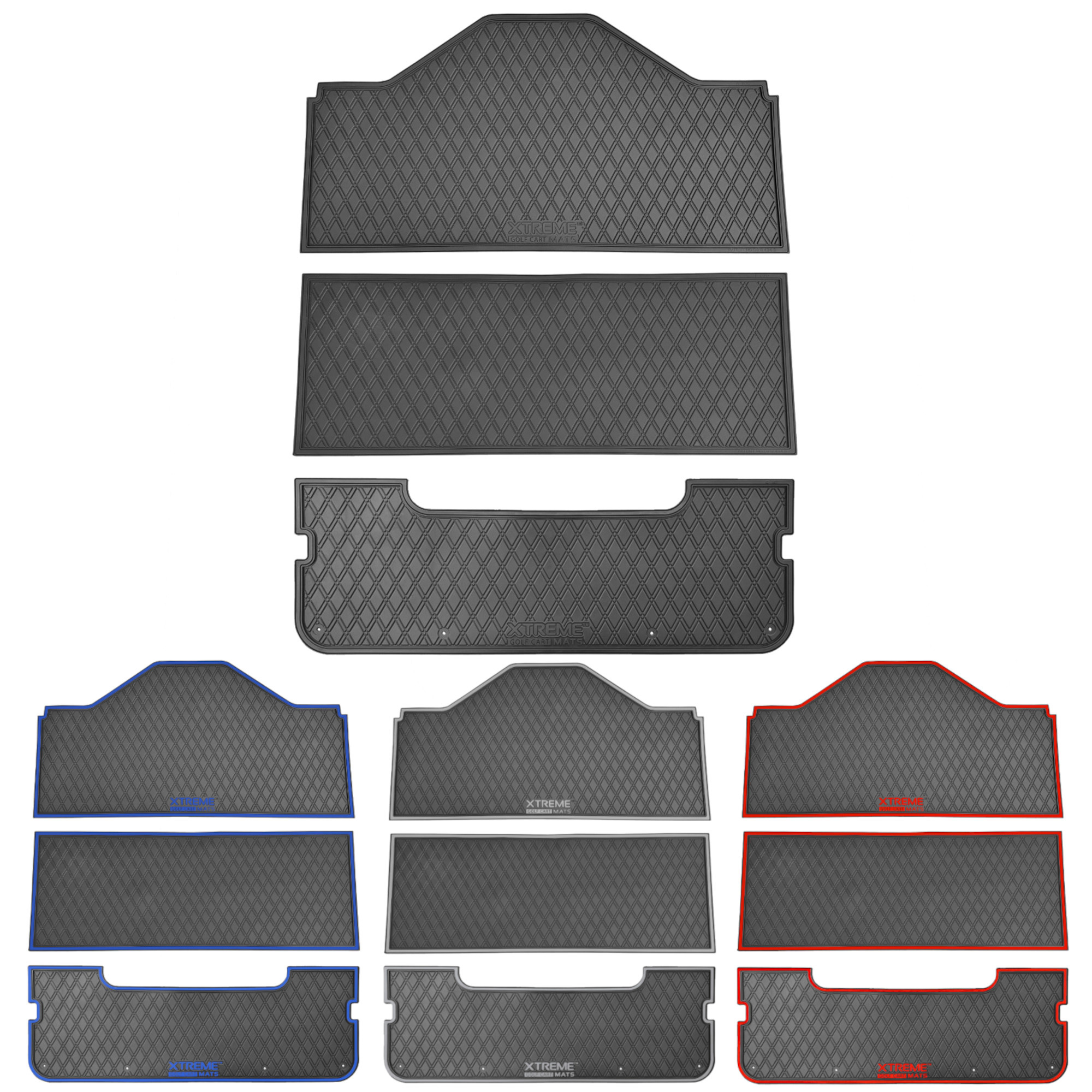 - Will these floor mats protect all the floors on my cart? This floor mat set includes three mats: one for the front row, one for the middle (front-facing) row, and one for the rear seat kit (rear-facing row).