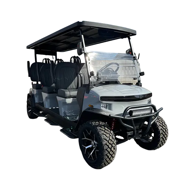You can easily identify the different model types by seating and cart lift. The Rover XL features four forward-facing seats and is a lifted model. Nomad is a 2+2 model, meaning it has two forward-facing seats and a rear-facing bench. The Nomad XL is a lifted version of the Nomad, also configured as a 2+2. Rover XXL is the new 6 passenger model with six forward-facing seats.