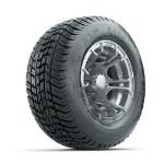 GTW® Spyder Silver Brush 10 in Wheels with 205/ 50-10 Mamba Street Tires – Set of 4