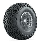 GTW® Spyder Silver 10 in Wheels with 22x11.00-10 Rogue All Terrain Tires – Set of 4