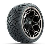 GTW® Helix Black/ Machined 14 in Wheels with 22X10-14 Timberwolf All-Terrain Tires - Set of 4
