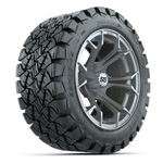 GTW® Spyder Silver Brush 14 in Wheels with 22X10-14 Timberwolf All-Terrain Tires - Set of 4