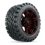 GTW® Stealth Gloss Black Red 14 in Wheels with 22x10-14 Timberwolf All-Terrain Tires - Set of 4