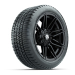 GTW® Barricade Gloss Black 14 in Wheels with 205-30-14 Fusion Street Tires - Set of 4