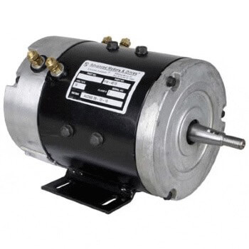 AMD 36-volt, 3hp @ 3000 rpm, 48-volt 4hp@4000rpm series motor with a tapered threaded shaft. Used on many Cushman vehicles. Replaces 5BC48JB500, 5BC48JB717, 5BC49JB474, D381, 885535 and others.